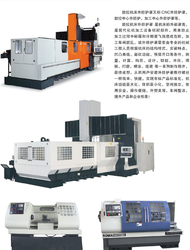 數(shù)控機床外防護罩又稱:機床外防護、機床外防護罩、機床外防護罩鈑金、數(shù)控機床外防護、CNC外防護罩、數(shù)控中心外防護、加工中心外防護罩等。